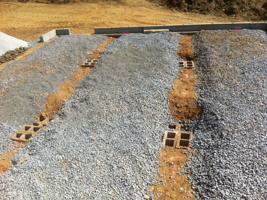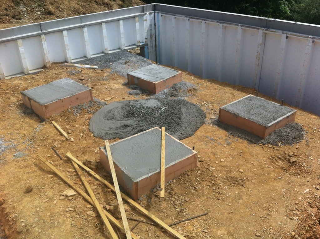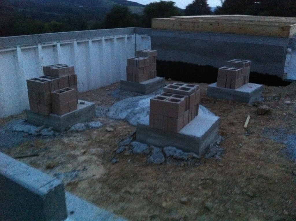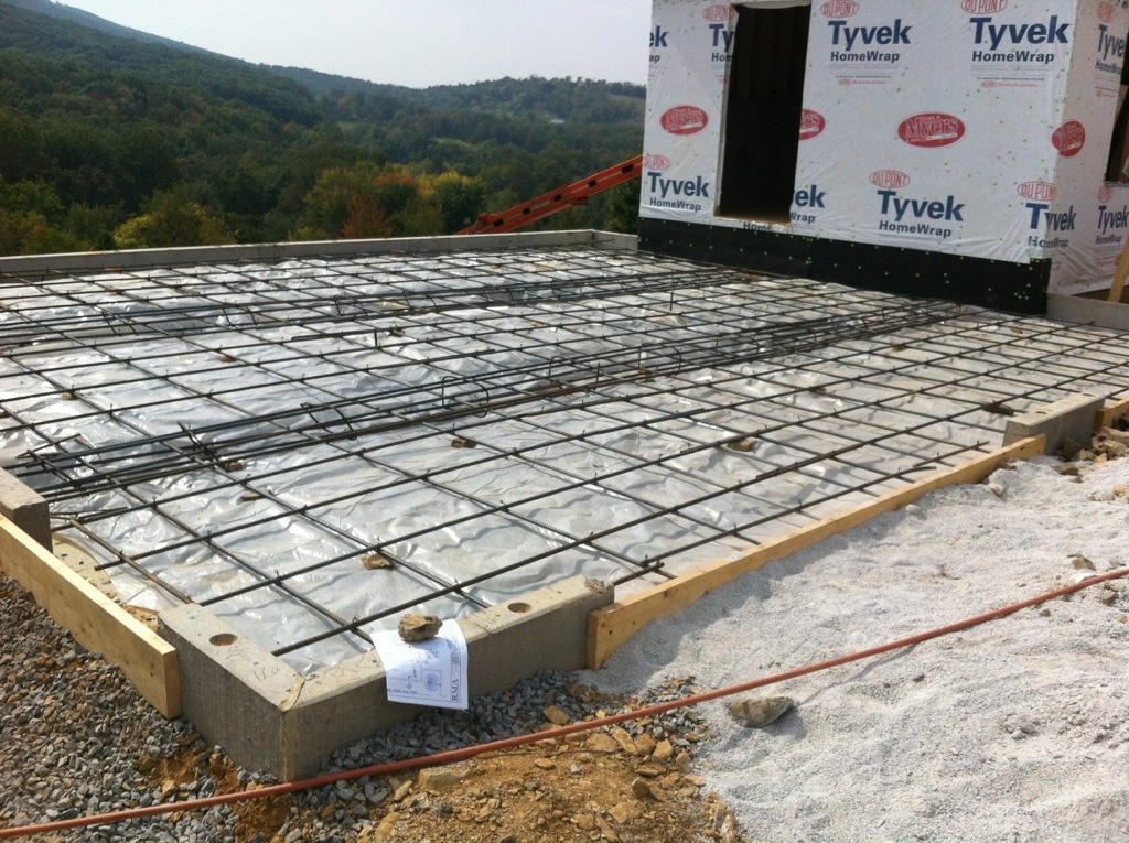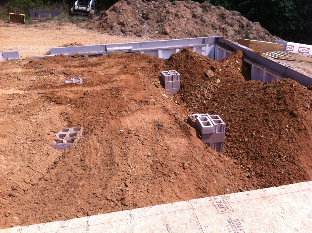 Do to the slope of our lot and the amount if backfill, the (future) garage floor slab had to be an engineered slab. Unfortunately this is a costly job but there was no way around it as the back fill would settle potentially allowing the garage floor to crack and or collapse. The engineered floor slab has 4 support columns under it going down to solid ground and is reinforced with rebar. The reason this is our “future” garage is because we decided not to build the garage at this time do to finances. We did decide it was worth it to spend the money to put in the foundation for the garage now so that when we get to the garage project later, we don’t have to do any excavation or concrete work. The other advantage to doing the foundation now is that it matches the foundation to the house and it is tied in to the house foundation for greater strength.