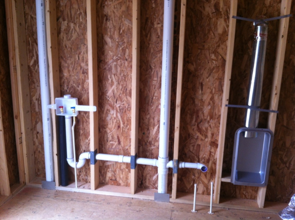It’s a urinal. Well, I wish, actually it’s a dryer vent box. It has to be moved because its in the wrong spot. It’s suppose to make it so that the dryer can fit flat against the wall. That may not work in our case however, due to the plumbing it will have to sit a little high.