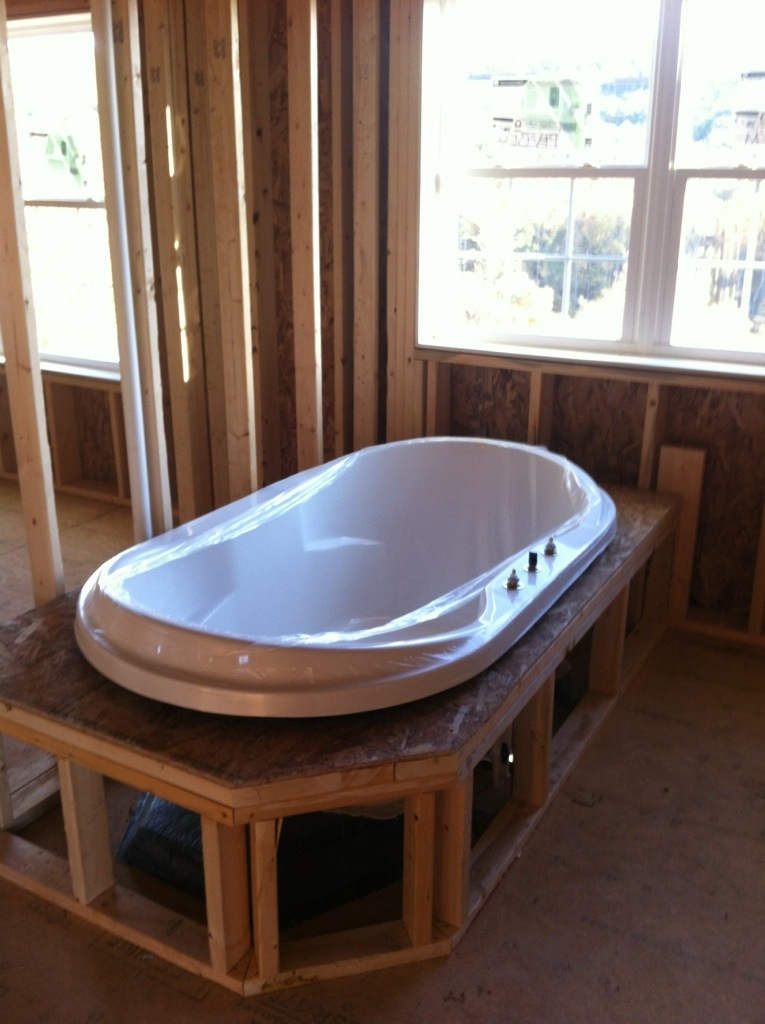 Angie’s tub was installed today. I could have added it to the plumbing post, but it deserves its own post.