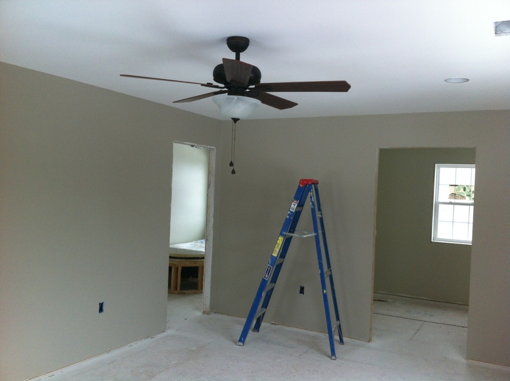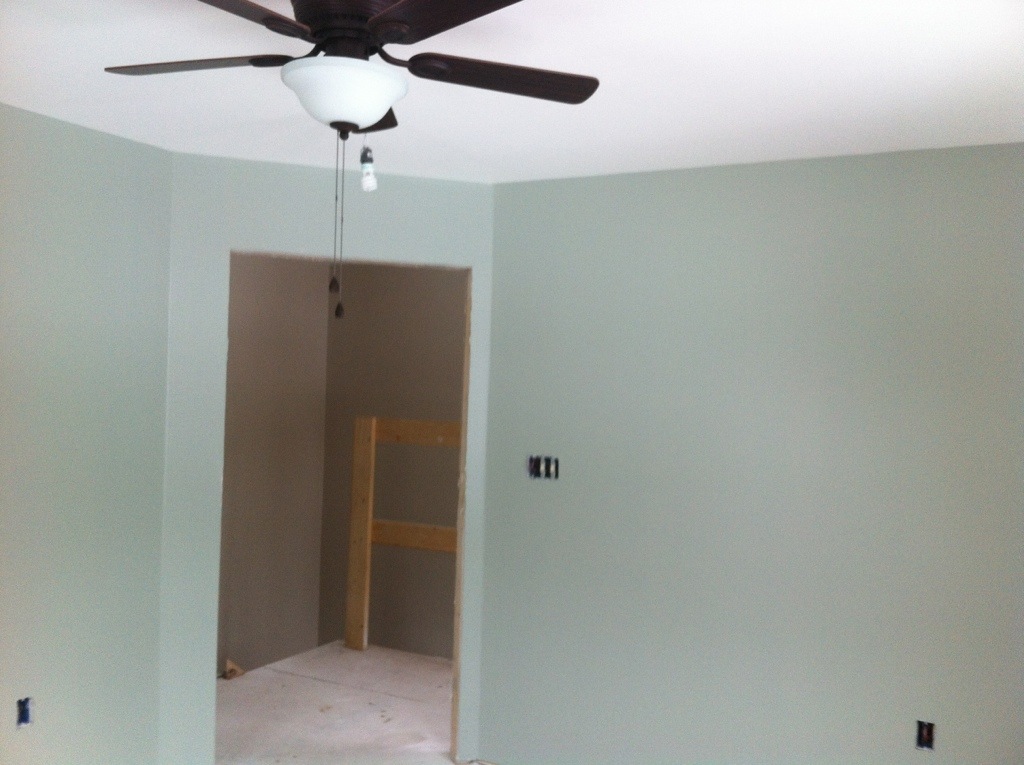 The house is looking amazing! Love the color choices. We used Sherwin Williams paints at our house and were extremely pleased as well. The paint has held up beautifully to 5 years of wear and tear. Loving the ceiling fans in the first picture too – cool!